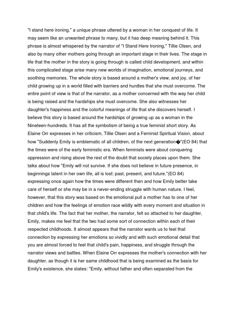 Analysis Of Tillie Olsen S I Stand Here Ironing Literary Theory And Criticism